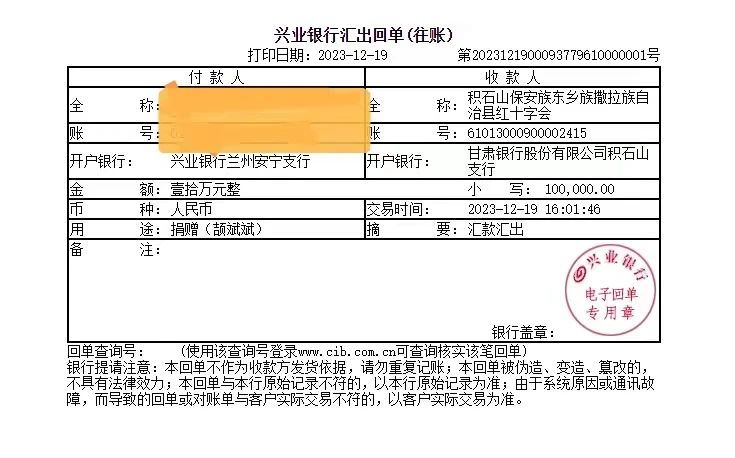 2023年12月19日beat365官方网站城市管理学院教师颉斌斌已通过积石山保安族东乡族撒拉族自治县红十字会向灾区捐款10万,以期望能为灾区人民送去一点温暖与关怀。面对地震灾区,颉斌斌老师无私奉献,用实际行动彰显了一位人民教师的大爱无私,为支援灾区贡献自己出的一份爱心。