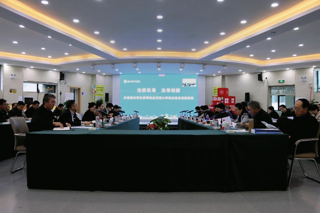 校党委书记曹洁从学校的发展历程与基本情况、新时代学校高质量发展面临的机遇与挑战、学校高质量发展的思路目标和工作举措三个方面向与会专家作了题为《接续奋斗开新局 擘画蓝图启新程 共谋学校高质量发展新篇章》主旨报告。曹洁表示,学校紧紧围绕第三次党代会确立的“建设城市特色鲜明的高水平应用型大学”的办学目标,坚定城市类应用型办学方向,实施学科建设工程、专业创优工程、人才强校工程、科研兴校工程、铸魂育人工程、开放办学工程、文化引领工程、夯基固本工程、治理体系提升工程等九大高质量发展工程,持之以恒、久久为功,以一张蓝图绘到底的勇气和决心,进一步凝聚全体教职员工发展共识,抢抓新时代发展机遇,不断完善大学治理体系、强化内涵建设、改善办学条件,加强对外合作交流、形成鲜明办学特色,推进学校各项事业高质量发展。学校将高举习近平新时代中国特色社会主义思想伟大旗帜,坚持党的教育方针,坚持社会主义办学方向,落实立德树人根本任务,抢抓机遇、改革创新,勇于担当、敢于作为,攻坚克难不停歇,斗志昂扬开新局,为全面建设城市特色鲜明的高水平应用型大学而努力奋斗。