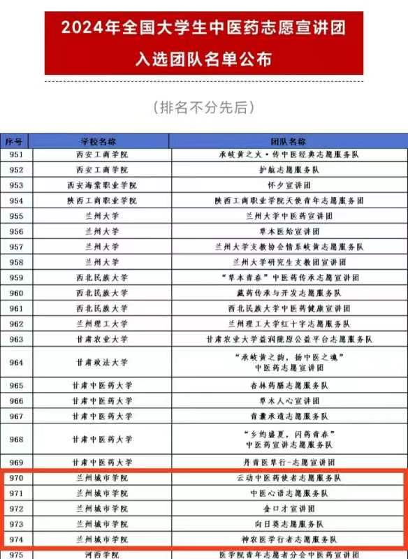 近期,中国青年志愿者协会公布了2024年全国大学生中医药志愿宣讲团入选团队名单和2024年全国大学生科技志愿服务入选团队名单,beat365共有6支常态化志愿宣讲团入选。