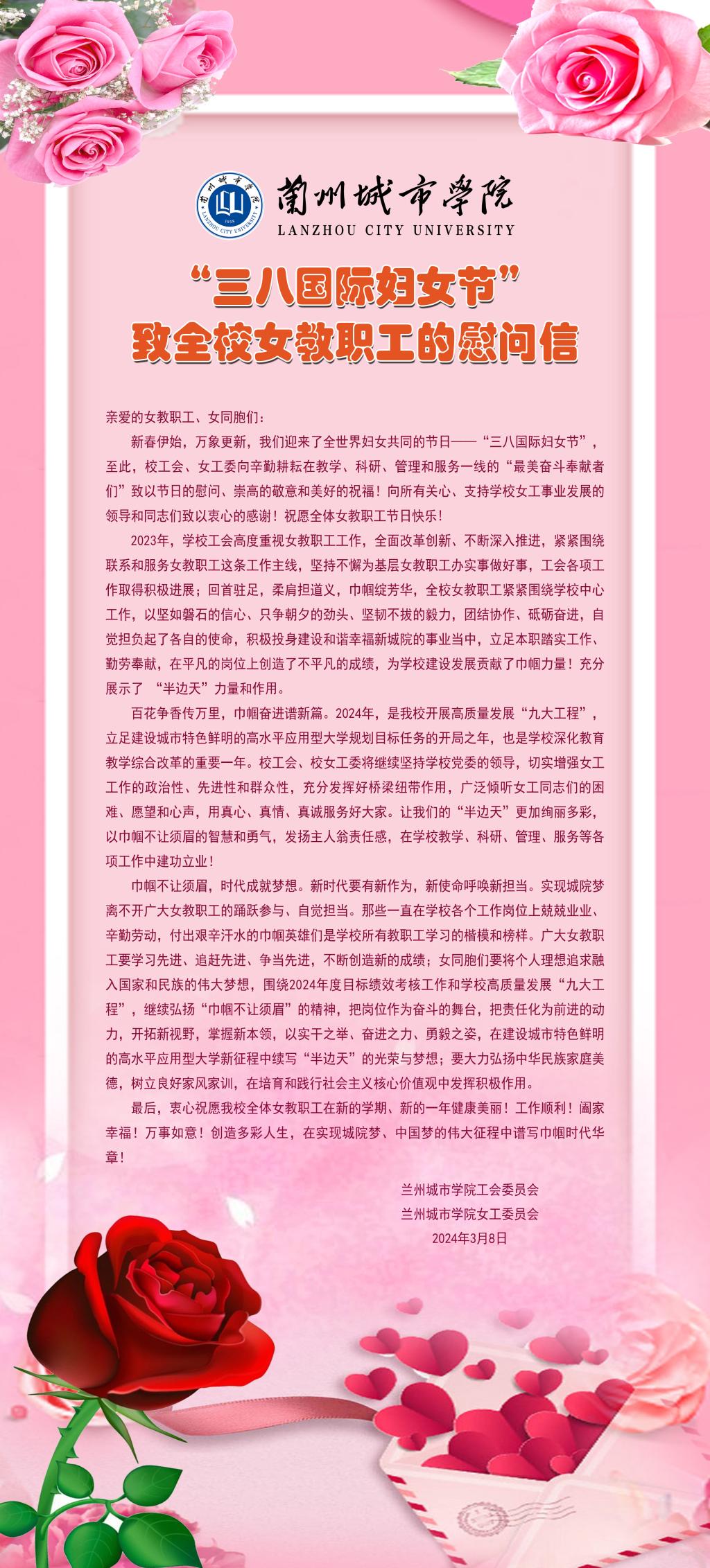 “三八国际妇女节”致全校女教职工的慰问信