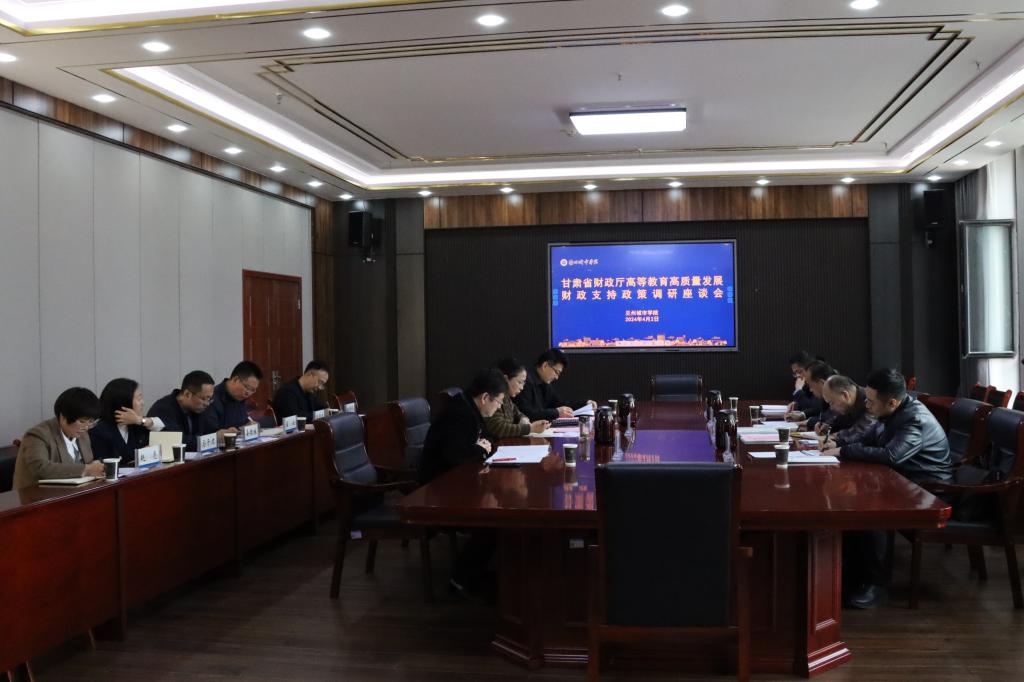 4月2日,甘肃省财政厅党组成员、副厅长牛成喆、教育事业处处长杨睿杰、监督评价局副局长王涛等一行莅临beat365开展调研指导工作。校党委书记曹洁、校党委副书记、校长韩高年、校党委常委、副校长魏晋华和学校相关部门负责人一同参加调研。