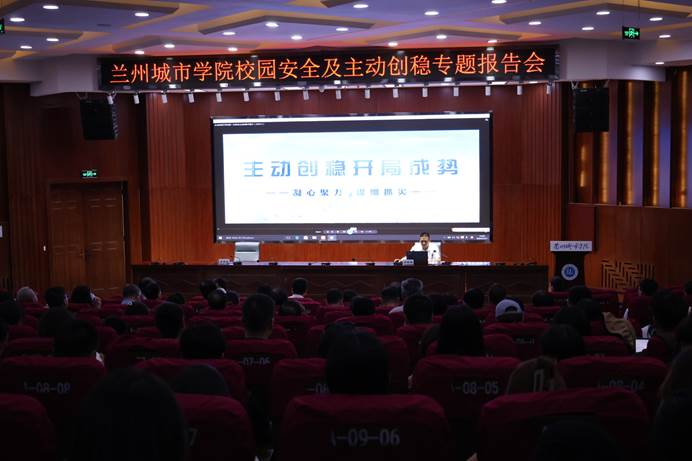 为深入学习贯彻习近平新时代中国特色社会主义思想和党的二十大精神,全面贯彻落实总体国家安全观,站稳人民立场,坚持以师生为本,进一步提升学校主动创稳的能力和水平,积极营造安全、稳定、和谐的校园环境,5月21日下午,学校举办校园安全及主动创稳报告会。报告会邀请中共甘肃省委政法委副书记王俊峰作了题为《深入开展主动创稳,守护校园安全稳定》的专题报告。