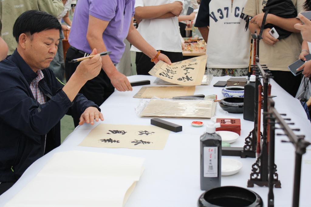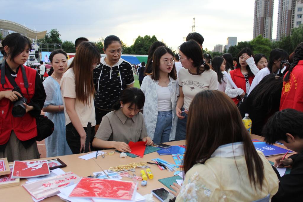 本次毕业晚会内容丰富多样,精彩纷呈。其中,学生美育社团、教工书法协会和非遗传承人(往届校友)携手合作,为毕业生和全校师生带来了一场别开生面的“把传统文化带回家”学生美育社团展示赠送活动。在现场,书法、簪花、剪纸、传统发簪、传统香牌、水拓团扇、古法拓印、汉服毕业照拍等传统技艺展示区前人头攒动。同学们纷纷驻足观看,饶有兴趣地参与其中。教工书法协会的老师们现场挥毫泼墨,一幅幅精美的书法作品跃然纸上,引得同学们赞叹不已。他们将这些作品赠送给毕业生,希望他们能够将传统文化带回家,传承和弘扬中华优秀传统文化。