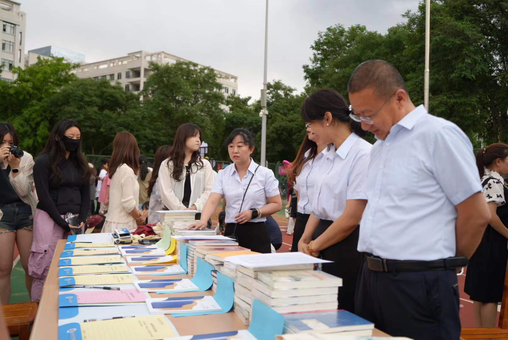 同时,学校还开展了“书韵留香”赠书活动。此次赠书活动,不仅是简单的书籍传递,更是一次文化的浸润与传承。学校精心挑选了一系列涵盖文学、历史、哲学、艺术等领域的经典著作,旨在为毕业生们提供丰富的精神食粮,引导他们在未来的人生道路上能够多读书、读好书、善读书,从书籍中不断汲取智慧和力量。活动现场,学校为 100 名优秀毕业生读者颁发了阅读书目档案纪念册。这些纪念册记录了毕业生们在大学期间的阅读历程,是他们努力学习、不断成长的见证。通过这种方式,学校希望能够将文化的种子播撒在每一位毕业生的心中,让他们在未来的人生道路上能够继续传承和弘扬中华优秀传统文化。