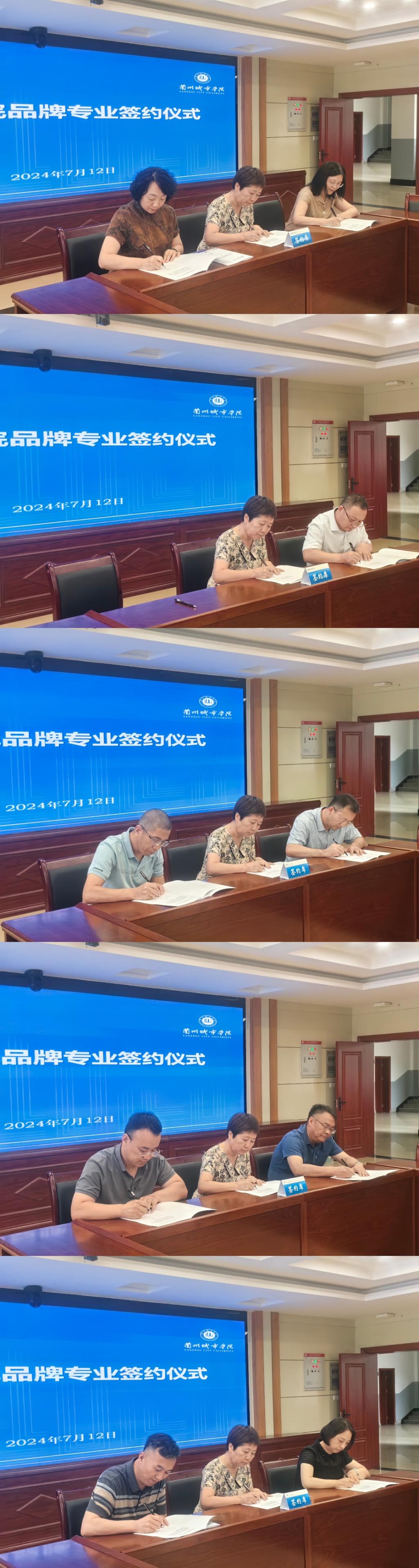 2024年7月12日上午,学校在校本部知行楼第二会议室举行2024年校级品牌专业目标责任书签订仪式。校党委副书记、校长韩高年,校党委常委、副校长王素云出席仪式。