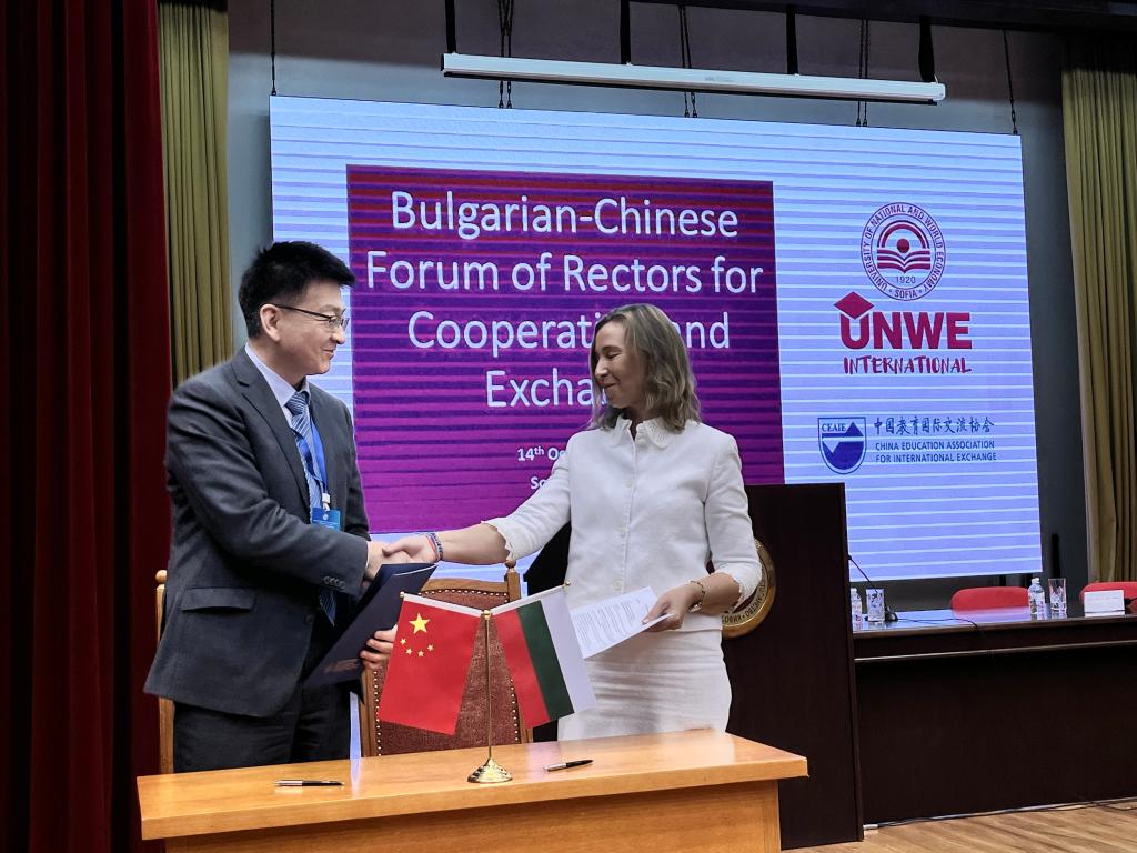 10月14日,韩高年出席第二届中国—保加利亚大学校长会议,与保加利亚大学校长会议主席、保加利亚索菲亚电信与邮政大学(Sofia University of Telecommunications and Post)校长米格莲娜·特梅尔科娃(Miglena Temelkova)共同签署了教育国际合作备忘录。10月15日,韩高年参访普罗夫迪农业大学和普罗夫迪音乐舞蹈美术学院,了解保加利亚农业、艺术等学科发展情况,并开展交流研讨。访问期间,中国驻保加利亚大使戴庆利、保加利亚教育与科学部副部长尼古拉·维塔诺夫(Nikolay Vitanov)与中国高校代表团会面。今年是中国保加利亚两国建交75周年,保加利亚是中国在中东欧地区的重要合作伙伴,两国拥有深厚的传统友谊和良好的合作传统。beat365与保加利亚高校签约并达成合作意向是深入贯彻习近平总书记今年5月出访欧洲的重要讲话精神以及落实全国教育大会精神的重要举措。
