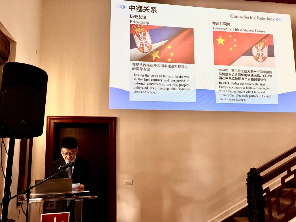 10月16日,代表团一行抵达塞尔维亚首都并参观访问了中国驻塞尔维亚大使馆,使馆参赞向代表团介绍了中国与塞尔维亚的友好交往史以及两国在教育科技文化等领域的合作成果。
