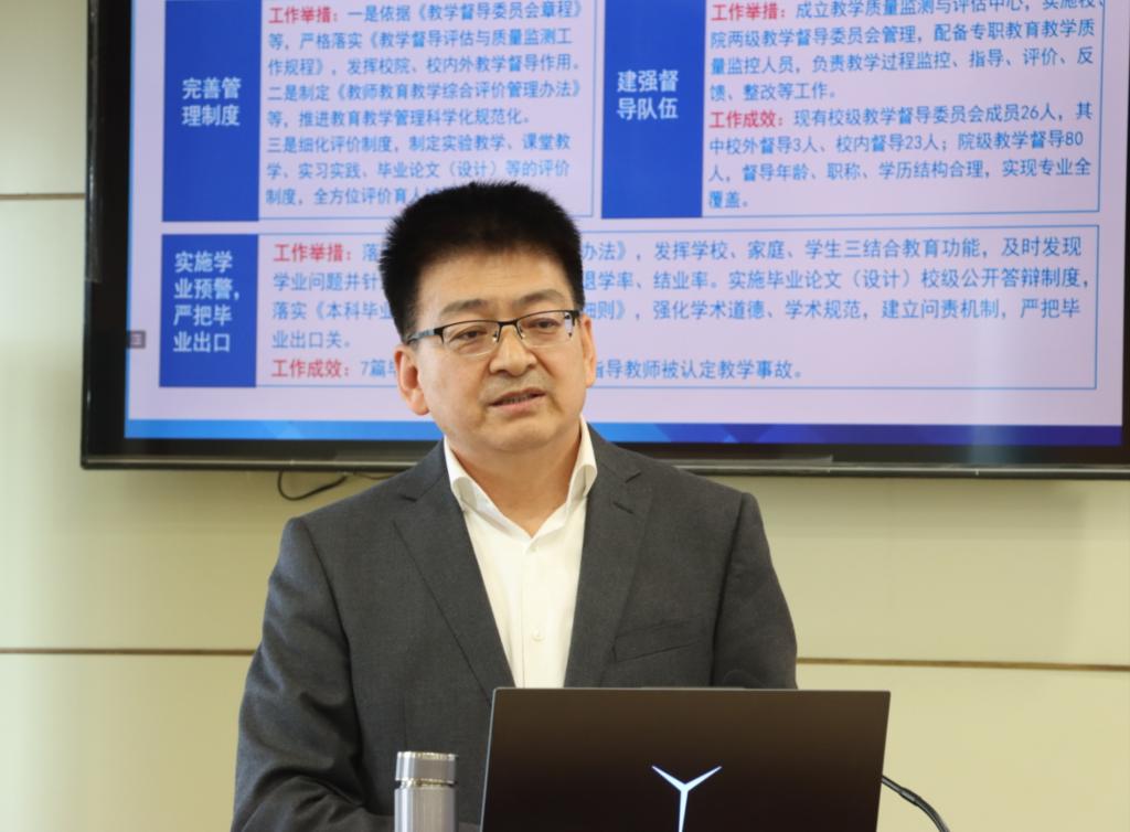 会上,校党委副书记、校长韩高年从学校简介、学校自评工作开展情况和学校自评结果三个维度,详细介绍了学校本科教育教学审核评估自评工作的进展,围绕办学方向与本科定位、培养过程、教学资源与利用、教师队伍、学生发展、质量保障和教学成效等审核评估7个一级指标,对学校本科教育教学工作审核评估自评报告进行了深度解读,重点介绍了学校近年来本科教育教学工作发展与改革的主要举措及取得的主要成效,对需要关注的重点问题进行了深入细致的讲解。他强调学校要以此次评估为契机,以评促建、以评促改、以评促管、以评促强,切实提高本科人才培养质量。
