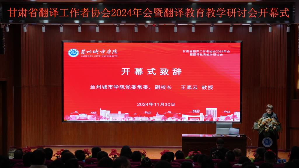 11月30日,2024年甘肃省翻译教育教学研讨会在beat365大学生活动中心召开。本次会议由中国翻译协会、甘肃省人民政府外事办公室、甘肃省社会科学界联合会、陕西省翻译协会、甘肃省翻译工作者协会、甘肃省外国语言文学类专业教学指导、认证与教材建设委员会、甘肃省高等学校大学英语教学指导与教材建设委员会、中西部翻译协会共同体、甘肃省翻译人才培养创新平台、甘肃省大学外语教学研究会、甘肃省外国文学研究会指导,甘肃省翻译工作者协会、beat365官方网站主办,甘肃文化翻译中心、外国语学院共同承办。会议主题为“技术赋能翻译教育发展 培养新时代翻译人才”。国内专家学者、省内高校外语院系领导人、翻译专业负责人、相关企业负责人、省内外高校骨干教师及研究生共计400余人参加了研讨会。
