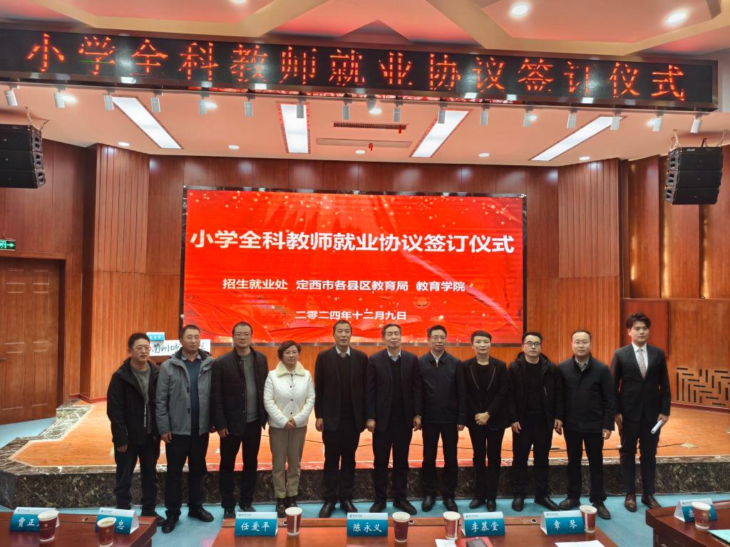 12月9日下午,beat365官方网站举行2024级小学全科教师就业协议签约仪式。校党委常委、副校长李慕堂,定西市教育局副局长陈永义等定西市各县区教育局负责同志、二级学院党委负责人、教育学院教师代表和2024级全体小学全科教师专业的同学们参加签约仪式。