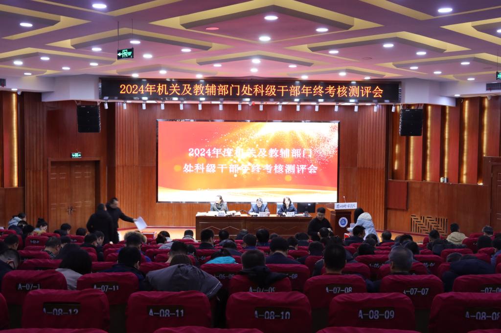 12月17日下午,2024年度机关及教辅部门处科级干部年终考核测评会及机关党委党支部书记抓党建述职评议考核工作会在校本部大学生活动中心一楼召开。