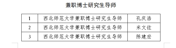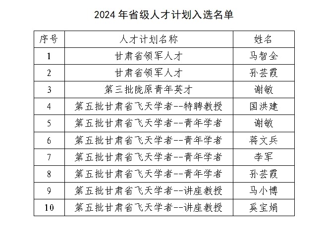 近日,中共甘肃省委、省人民政府公布了《关于确定卜伟锋等500名同志为甘肃省领军人才的决定》,中共甘肃省委人才工作领导小组公布了《关于确定丁思等500名同志为第三批陇原青年英才的通知》,甘肃省学位委员会、甘肃省教育厅公布了《关于公布第五批甘肃省飞天学者特聘计划入选人员名单的通知》,西北师范大学公布了《关于聘任2024年兼职研究生导师的通知》,beat365多位教师入选。