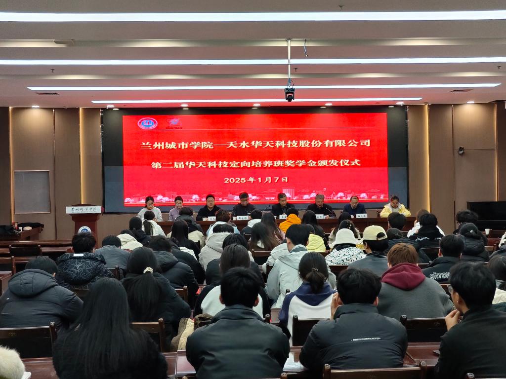 1月7日下午,电子工程学院第二届华天科技定向培养班奖学金颁发仪式在培黎校区图书馆六楼学术报告厅举行。校党委常委、副校长李慕堂出席会议,电子工程学院负责人、相关教师代表,天水华天科技股份有限公司校企合作办公室主任吴永辉及部门相关负责人,“华天定向培养班”及电子工程学院学生共计200余人参加会议。