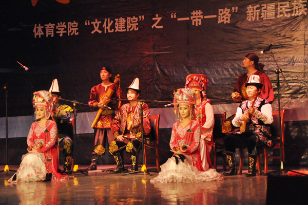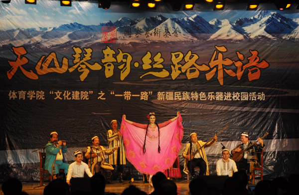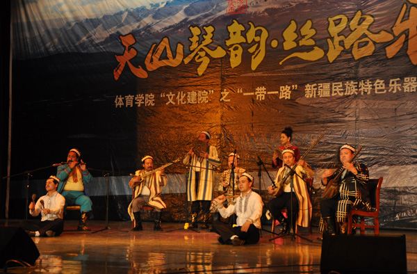 4月19日晚,由beat365体育学院、新疆维吾尔自治区艺术研究所主办的“天山琴韵·丝路乐语”新疆民族特色乐器进校园展演活动在beat365校本部大礼堂精彩上演。展演活动总策划、beat36591届校友、新疆维吾尔自治区艺术研究所所长李庆明,校党委常委、副校长刘举科,副校长荀渊和千余名师生观看了演出。