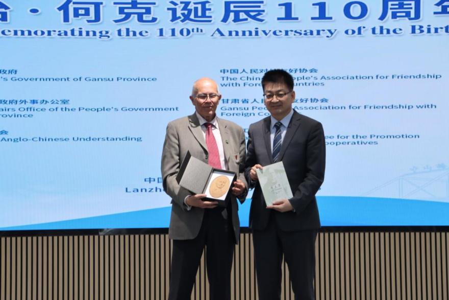 何伟在致辞中表示乔治·何克先生跨越国界的大爱、不畏艰险的担当、无私奉献的精神,与中国倡导的“构建人类命运共同体”理念高度契合,也与甘肃开放包容、坚韧奋进的品格一脉相承。今天的甘肃,正站在高质量共建“一带一路”的时代潮头。作为丝绸之路黄金段,甘肃将充分发挥战略通道优势,全力构建内外兼顾、陆海联动、向西为主、多向并进的开放新格局。我们要以更开放的胸襟深化国际交流,以更务实的行动推动民心相通,让历史的情谊在新时代焕发出新的活力。未来,我们愿进一步拓展中英友好交流的深度与广度:深化教育合作,推动高等教育、职业培训等方面的经验互鉴;厚植民间友好,支持青年互访、文化遗产保护等人文交流项目;共促绿色发展,拓展新能源、现代农业等领域的务实合作。