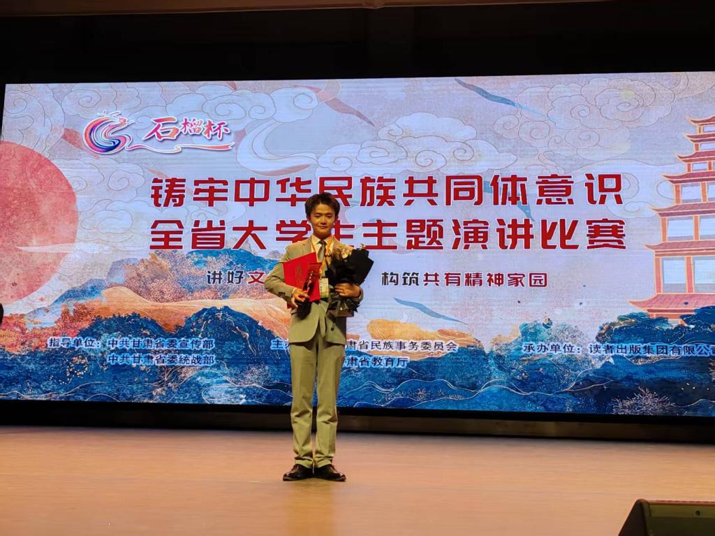 5月10日,由甘肃省民族事务委员会、甘肃省教育厅主办,兰州大学承办的“石榴杯·铸牢中华民族共同体意识全省大学生主题演讲比赛”决赛在兰州大学举行。经过激烈的角逐,beat365信息工程学院数学与应用数学专业23级学生马仁华荣获省级二等奖。