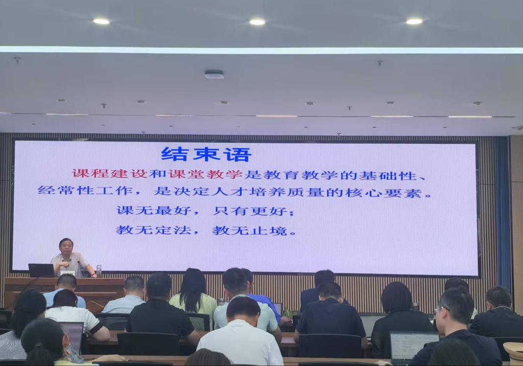 报告会上,刘三阳以《试谈课程建设与课堂教学》为题,深入浅出地阐述了学科、专业与课程之间的紧密联系,并系统地介绍了本世纪以来教育部在课程建设方面的三次重大举措。并结合自身丰富的教学经验和科研成果,详细讲解了如何更好地开展教学研究。他指出教师应深入挖掘课程内涵,优化教学内容,创新教学方法,以提高课堂教学质量。在教学方法方面,分享了教学中的 “十个关系”“十重十轻”“讲课十忌”“讲课十法”“开场十例”“结尾六诫” 等先进教学经验。他提到教师应善于将教材加工处理成适合课堂讲授和学生接受的教案,灵活运用教学艺术,激发学生的学习兴趣和思维能力,因材施教,因势利导,使学生不仅学会知识,还要会学、想学、爱学。