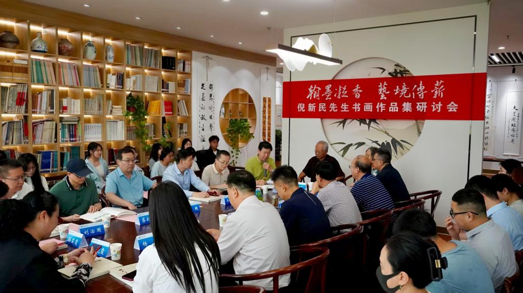 倪新民向甘肃张芝书法院、图书馆等单位捐赠个人书画作品集及书法作品。在作品集出版说明环节,倪新民系统阐述了创作理念与学术思考,结合自身研习经历,寄语青年学子要“深植传统沃土,勇探艺术新境”,并系统分享了“守正创新”的书画研习方法论。