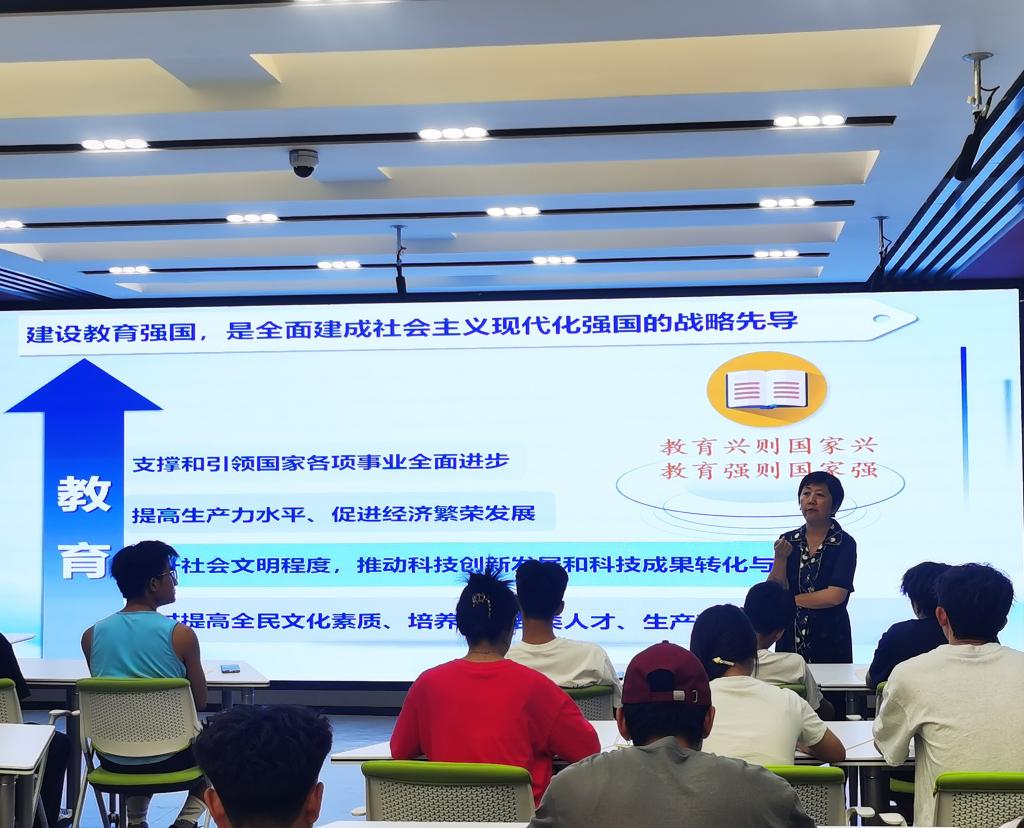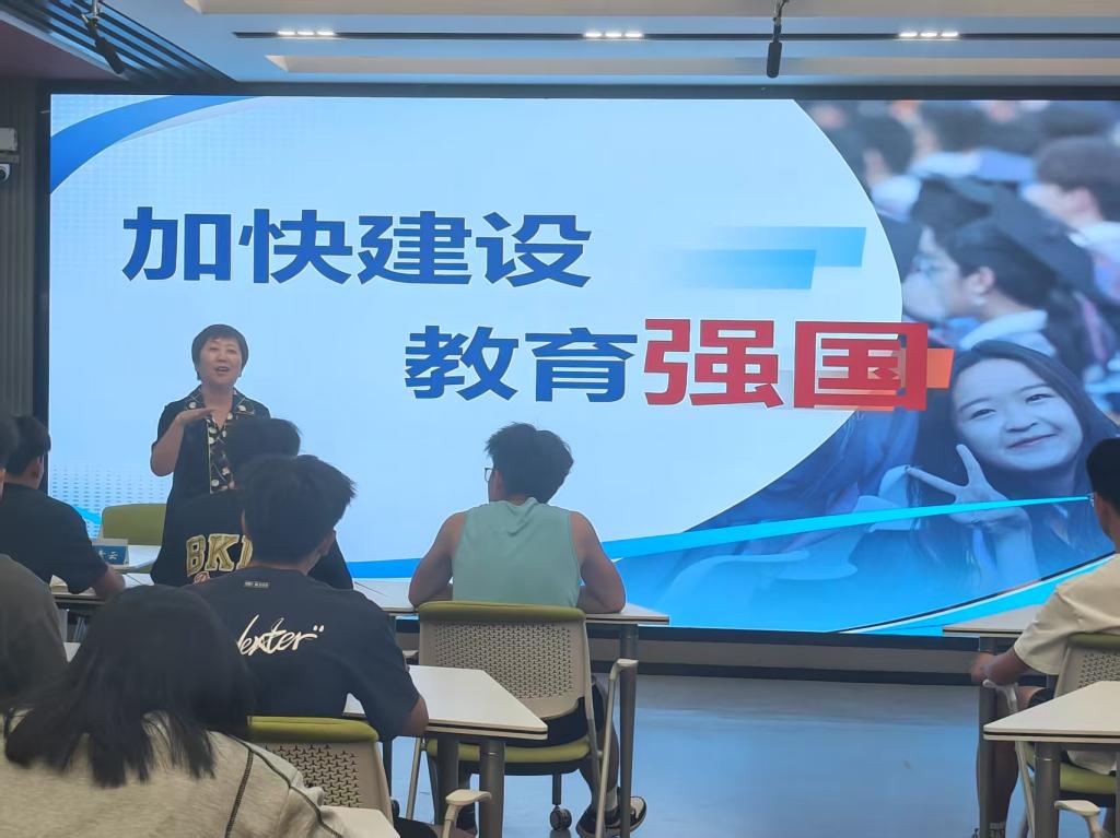 王素云与同学们一同学习了《教育强国建设规划纲要(2024-2035)》,以新时代新征程为什么要建设教育强国、我们建设教育强国有哪些信心和底气、建设教育强国的根本任务是什么三个问题为导向,从“坚实基础、战略支撑”“蓬勃发展、优质均衡”“深化改革、系统推进”三方面深入分析了教育强国的科学内涵和重要性,强调建设教育强国是实现以中国式现代化全面推进强国建设、民族复兴伟业的先导任务、坚实基础和战略支撑,鼓励同学们锚定2035年建成教育强国的目标,跑好历史的接力棒,书写以教育强国建设支撑引领中国式现代化的时代新篇章,在建设教育强国的进程中绽放青春风采。课程前后通过线上问卷测试的方式,了解学生学习情况,确保了课堂教学效果。