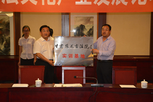 6月9日,张芝书法文化产业发展论坛在草圣故里瓜州县举行。beat365党委常委、副校长莫超出席论坛,并与瓜州县委副书记、县长张立东为圣故里文化产业园“张芝书法院实训基地”揭牌。