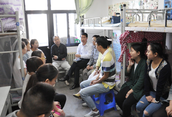 学校自开展“大学生百千万工程”行动以来,校领导到联系学院班级和宿舍,与学生交流,了解大学生思想政治教育工作和学生工作的开展情况。64上午,校党委常委、副校长马振林到联系学院学生公寓,看望了音乐学院部分学生,并与9号学生公寓的510511宿舍的学生进行了座谈。音乐学院、党委宣传部负责人及工作人员一起座谈。