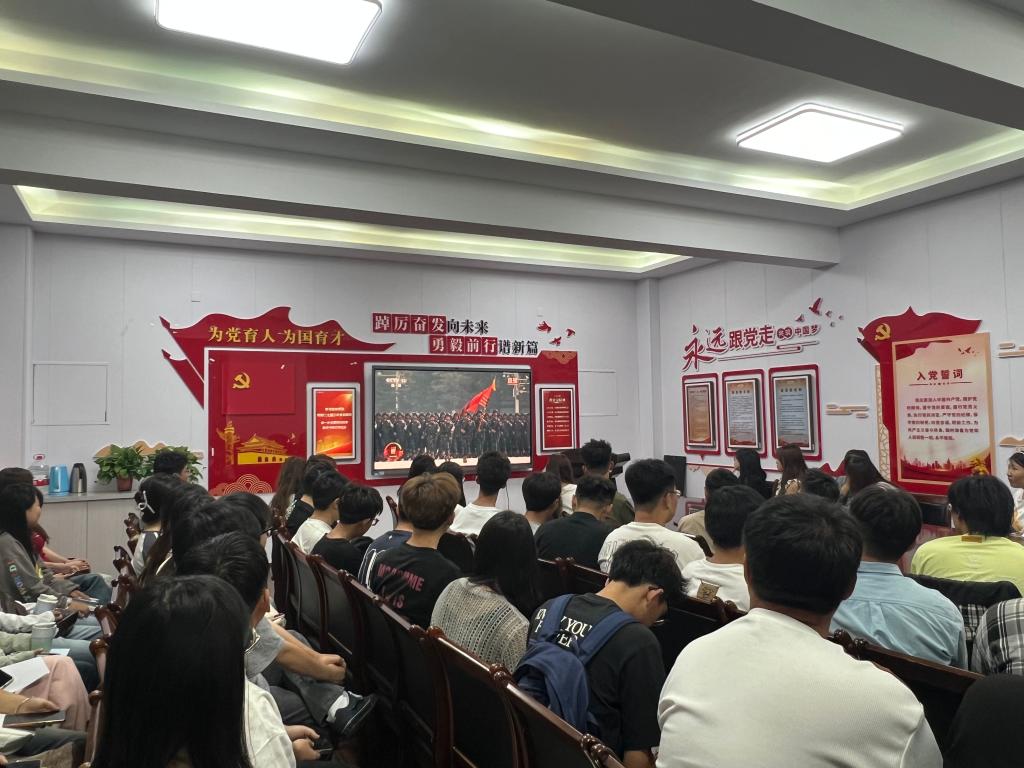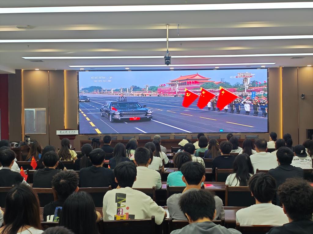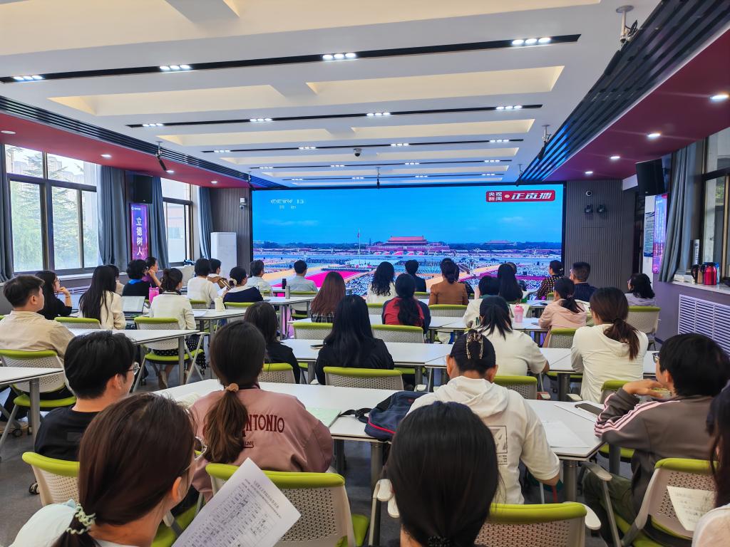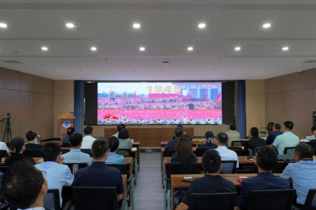 9月3日,纪念中国人民抗日战争暨世界反法西斯战争胜利80周年大会在京隆重召开。全体校领导、党委常委,校党委委员、纪委委员,党委职能部门、基层党委负责人,机关副处级以上干部在博雅讲堂集中收看大会盛况,各二级学院、各单位、各部门同步组织师生通过电视、网络、广播等媒体,集中收看收听大会盛况和相关报道,并结合实际,认真讨论畅谈学习体会。