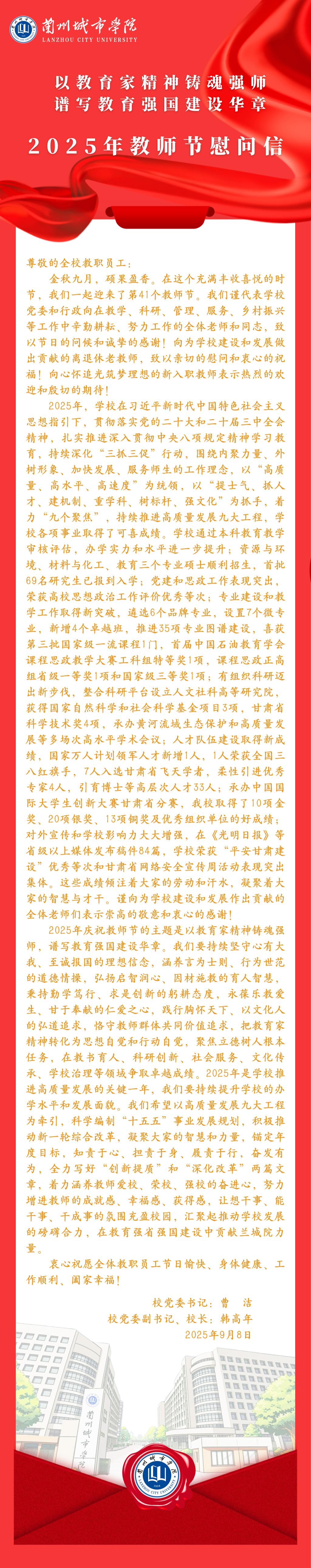 以教育家精神铸魂强师 谱写教育强国建设华章——2025年教师节慰问信