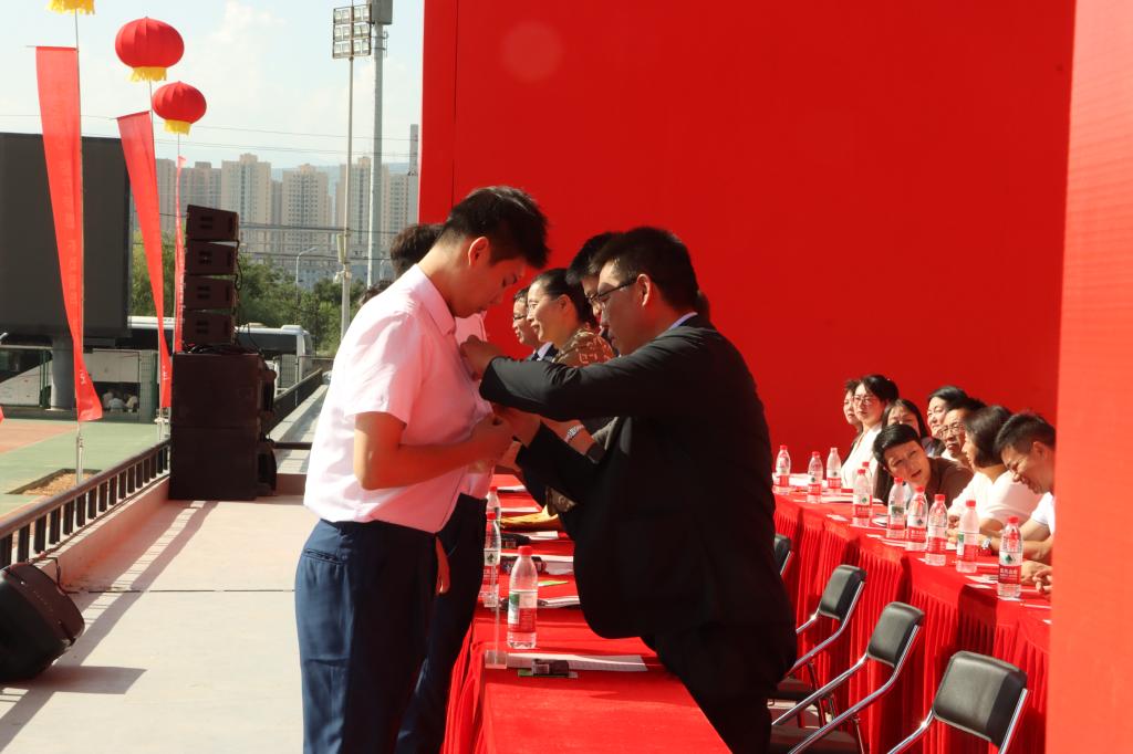 典礼上,校领导为新生代表佩戴了校徽。退役复学代表带领新生庄严宣誓,要传承校训精神,树立高远志向,锤炼过硬本领,努力成长为有理想、敢担当、能吃苦、肯奋斗的时代新人。