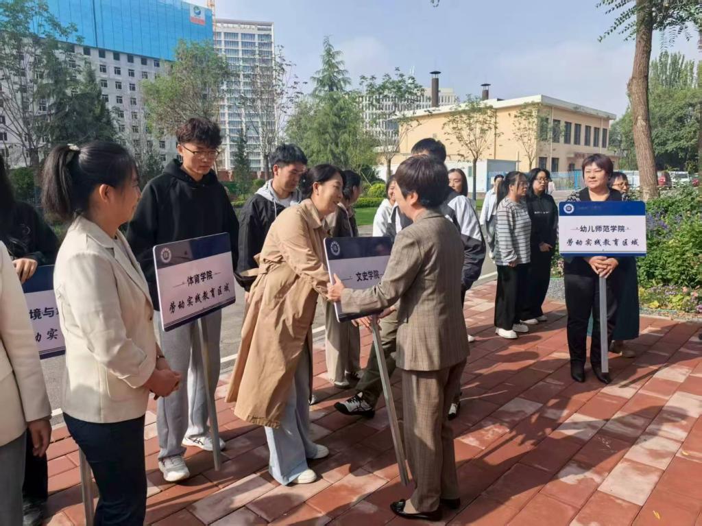 9月19日上午,素质教育与教学中心在校本部致远楼前举办以“劳动创造幸福”为主题的校园劳动实践区域划分及授牌仪式。校党委常委、副校长王素云,相关职能部门负责人、各二级学院教学负责人及校本部学生代表参加活动。
