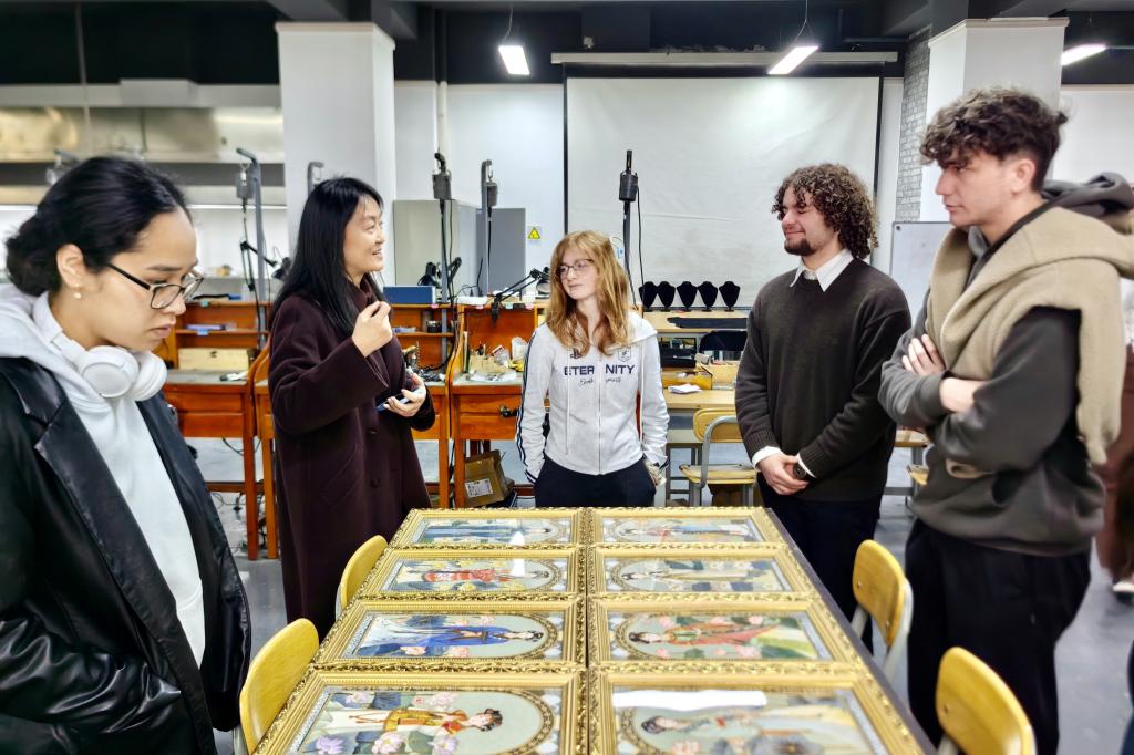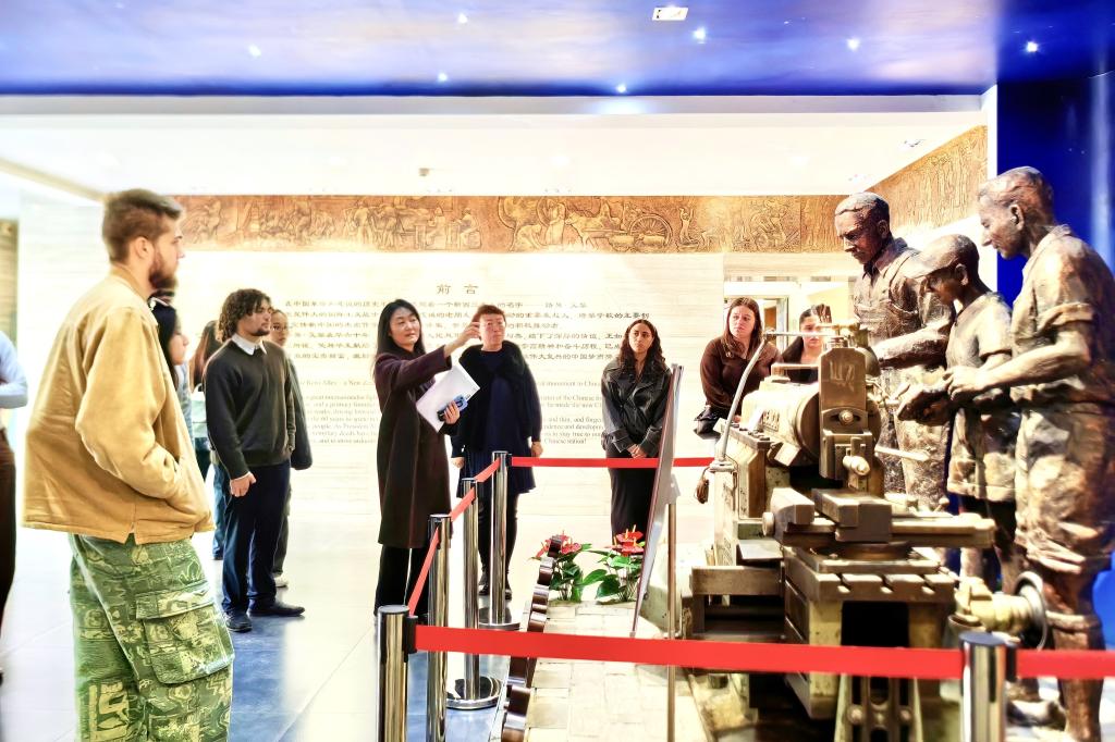 代表团先后参观了路易·艾黎研究中心与艺术设计学院纤维、漆艺、首饰工作室。在路易·艾黎研究中心,代表团成员通过详实的史料和实物展品,深入了解路易·艾黎的生平事迹及其与中国教育事业的深厚渊源。在艺术设计学院工作室,代表团近距离观赏学生创作过程,与师生交流探讨。各类富有中国文化特色和校园艺术气息的作品,让代表团直观感受了中国传统与现代艺术融合的独特魅力。