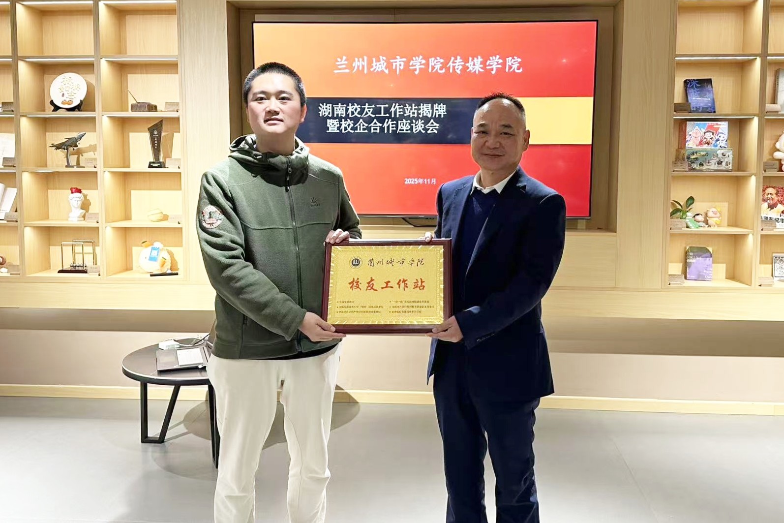 为提炼办学特色、深化学科建设、拓展产教融合路径,近日,校党委常委、副校长方忠义,传媒学院党委负责人一行赴湘潭大学艺术学院、长沙学院马栏山新媒体学院开展调研学习,并在长沙举行校友工作站授牌仪式。