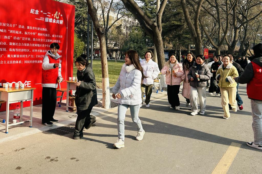 为纪念“一二·九”爱国运动90周年,12月9日,学校在校本部和培黎校区同步举办“纪念‘一二·九’ 接续永向前”校园迷你马拉松健康跑活动。校党委书记曹洁出席活动并致辞,学校领导班子成员牟录贵、王素云、褚汶榉、何玉红出席活动。全校21个工会分会200余名教职工及近2000名学生参加活动。