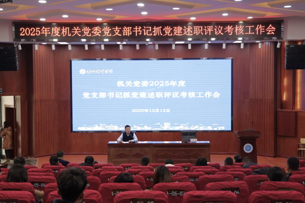 12月12日下午,2025年度机关教辅部门处科级干部年终考核测评会、处级领导干部政治素质考察工作会及机关党委党支部书记抓党建述职评议考核工作会在校本部大学生活动中心一楼召开。校党委副书记牟录贵出席会议,机关教辅各部门及机关党委全体党员参加会议。
