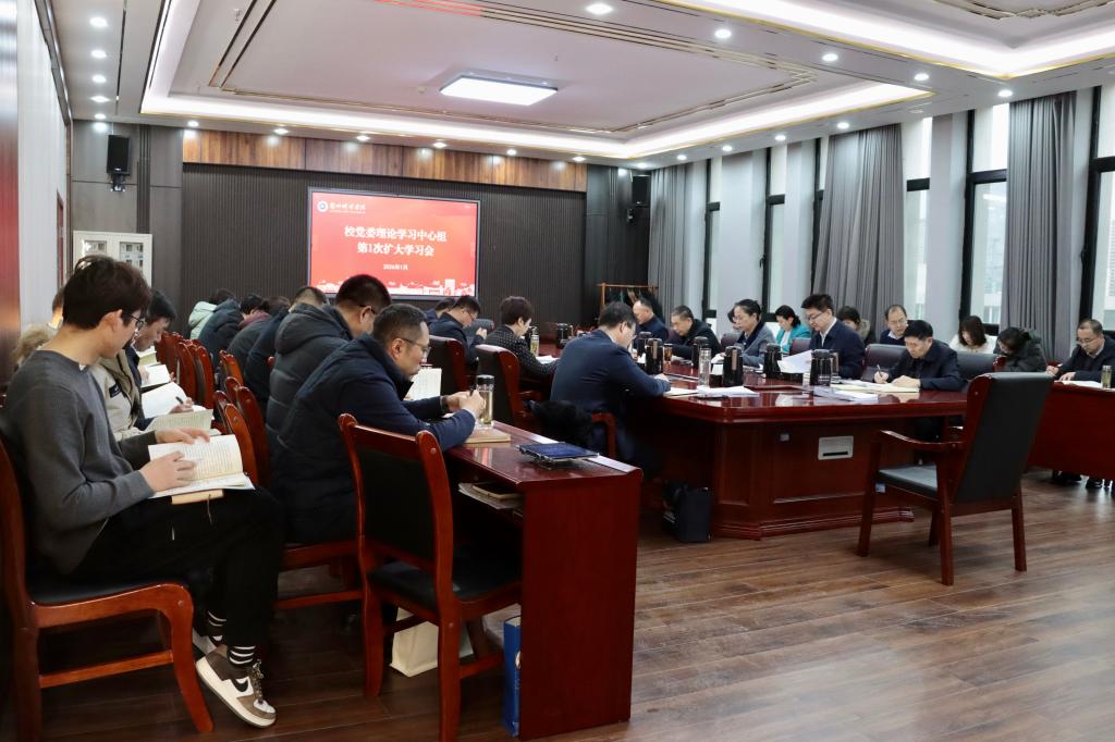 为深入学习贯彻习近平法治思想,增强法治意识、法治思维,提升办学治校的科学性、规范性,1月18日,学校在校本部逸夫图书馆5楼会议室,举办校党委理论学习中心组第1次扩大学习会,会议由校党委书记曹洁主持,全体校领导、党委常委出席会议。