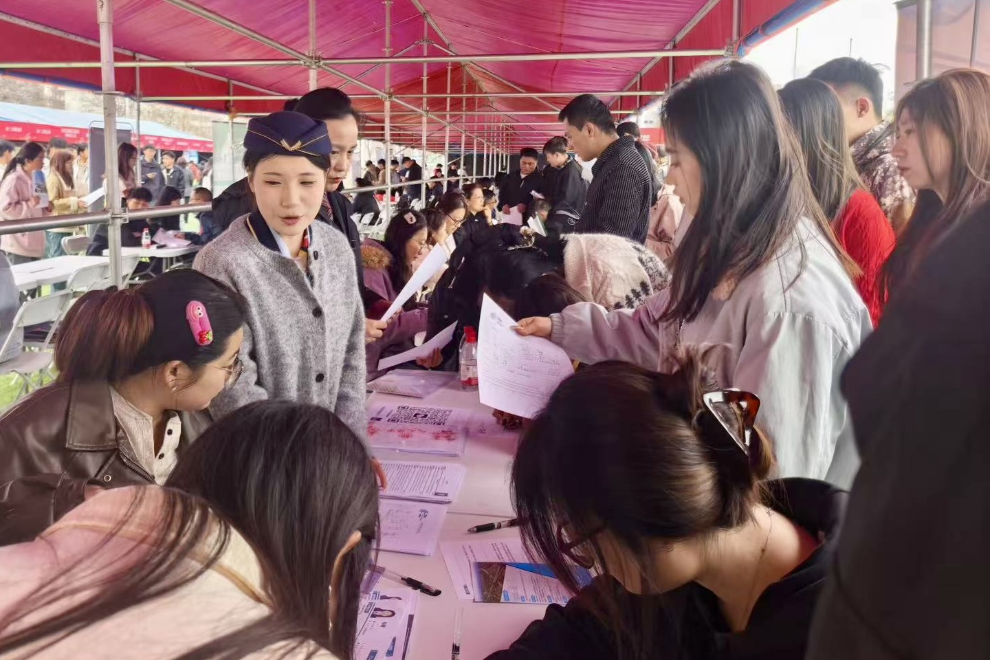 学校通过访企拓岗、精准邀约等多种方式,汇聚岗位资源,共吸引了包括新疆生产建设兵团人社局招聘团、桐乡市人社局招聘团、内蒙古乌海市乌达区就业服务中心招聘团等376家优质单位来校招贤纳才,提供岗位数达1.4万余个,招聘需求涵盖教育、制造业、信息传输与技术服务业、文化、公共管理等多个行业,全方位满足不同专业学生的求职需求。据统计,双选会共吸引5120余人参会,累计接收简历9000余份,现场签约59人,200余名毕业生与用人单位达成签约意向。
