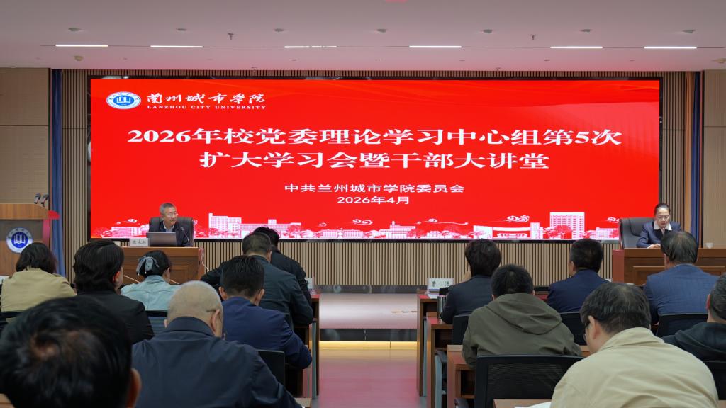 为深入学习贯彻2026年全国两会精神,持续加强学校干部队伍思想政治建设,提升党员干部政治素养和履职能力,4月28日,学校在校本部博雅讲堂举办校党委理论学习中心组第5次扩大学习会暨干部大讲堂。甘肃省社会科学院党委委员、副院长陈永胜教授应邀作专题宣讲。全体校领导、党委常委出席会议。会议由校党委书记曹洁主持。
