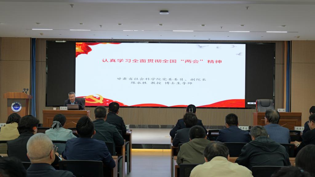陈永胜以“认真学习全面贯彻全国两会精神”为题,围绕两会的历史沿革与重要意义、习近平总书记重要讲话精神、政府工作报告与“十五五”规划纲要核心部署、制度成果与落实逻辑,结合甘肃实际的实践路径等五个方面,系统阐释了2026年全国两会的精神实质、核心要义和实践要求。他指出,两会作为中国特色社会主义民主政治的重要载体,是世界观察“中国式民主”的窗口;要以习近平总书记重要讲话为根本遵循,把握高质量发展这一首要任务、以人民为中心的发展思想、统筹发展和安全、深化改革开放、全面从严治党五大方向;要明确“十五五”规划六大重点任务,并结合甘肃实际,推进“五强”行动与“七地一屏一通道”建设,奋力谱写中国式现代化甘肃篇章。