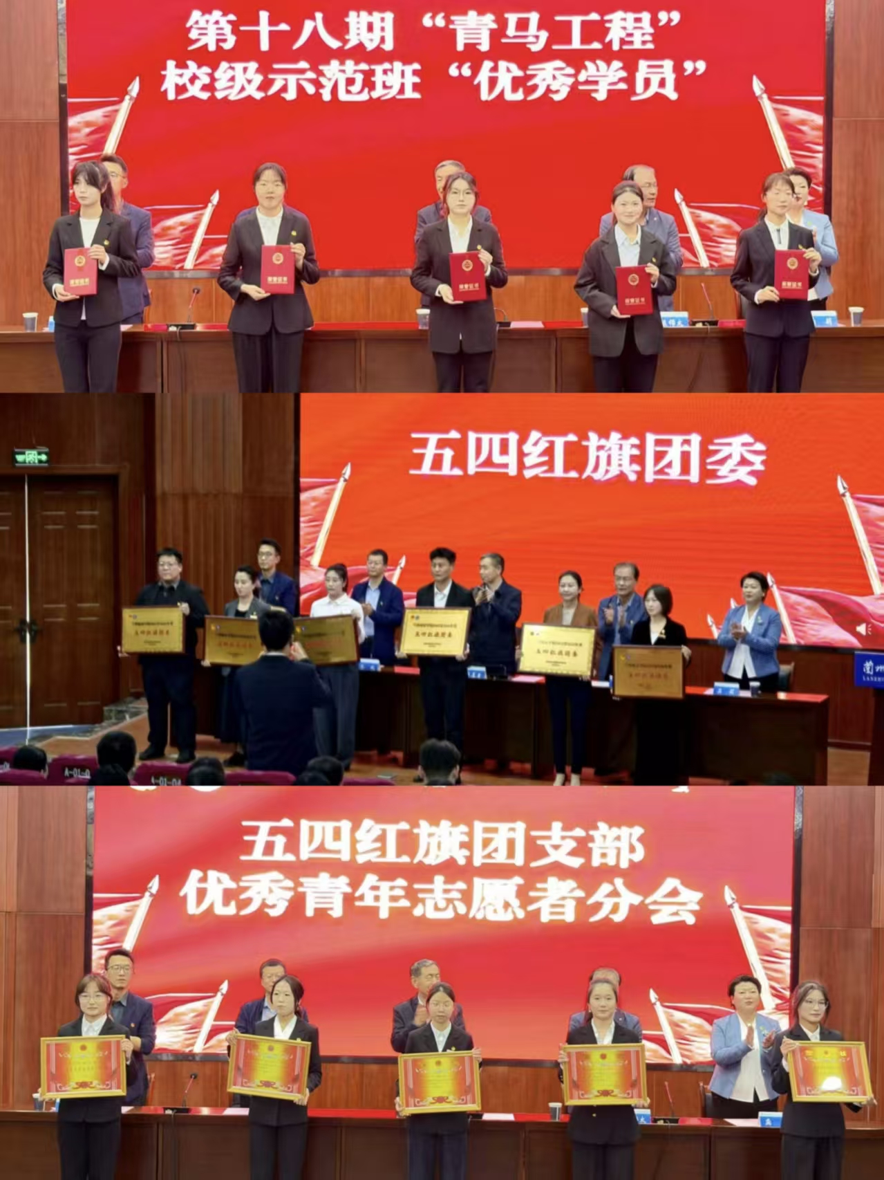 党委学生工作部负责人宣读表彰决定,与会领导为获奖集体和个人颁奖。培黎机械工程学院团委、环境与城市建设学院学生会分别代表全校团学组织分享了工作经验和感悟。大会同期举行了2026年上半年新发展团员入团仪式和第十九期“青马工程”校级示范班开班式。