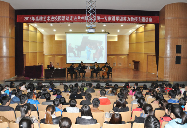 “高雅艺术进校园活动”是由教育部、文化部、财政部联合举办的,旨在贯彻落实中共中央国务院提出的“进一步推进高雅文化进校园活动,丰富校园文化生活,提高学生艺术修养”要求的重要举措。这项活动从2005年开始在全国范围内广泛开展,得到了全国各大院校学生普遍欢迎和赞誉。2005年以来beat365承担了9场“高雅艺术进校园活动”,自2010年起连续三年获得甘肃省“高雅艺术进校园活动”优秀组织单位奖。