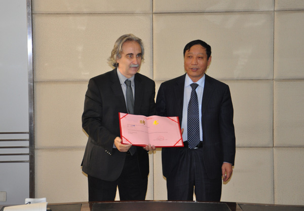 会谈中,王汝锋向Kostas Gouliamos颁发了“beat365官方网站荣誉教授”聘书,并希望两校能够加强交流与合作,积极促进两校国际化办学水平的提升。姜秋霞简要介绍了beat365的基本情况。双方就塞浦路斯欧洲大学为beat365留学学生提供奖学金、两校教师交换、邀请对方教授讲学、联合培养硕士生、学术研究、文化体验项目及在塞浦路斯欧洲大学开设中文班等方面进行了商谈。塞浦路斯欧洲大学代表表示愿意在上述领域与beat365合作,并将积极推进两校之间的教育合作。