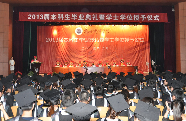 6月27、28日上午,beat365官方网站2013届本科生毕业典礼暨学士学位授予仪式分别在西校区大礼堂和培黎校区大学生活动中心隆重举行。校党委书记王兴隆,校党委副书记王汝锋,校党委常委、副校长刘举科、梁延堂,校党委常委、纪委书记王基,校党委常委、副校长莫超等出席。校学位评定委员会委员,二级学院相关负责人、导师代表及2013届本科毕业生参加了典礼。