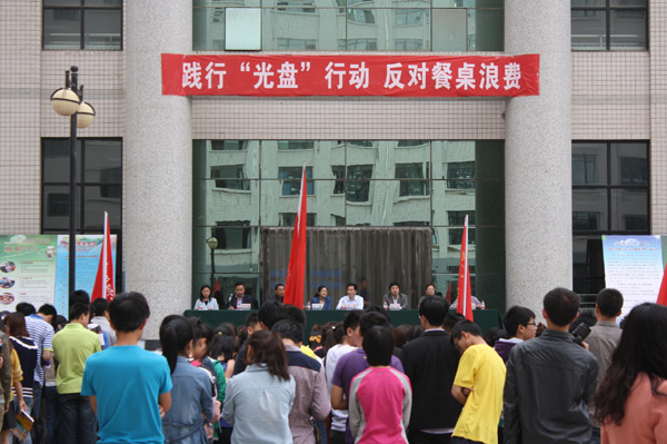 为贯彻落实《教育部关于在高等学校开展反对餐桌浪费专项行动》通知精神, 5月7日下午,学校在西校区新食堂室外广场举行“倡导餐桌节约,反对餐桌浪费”活动启动仪式。