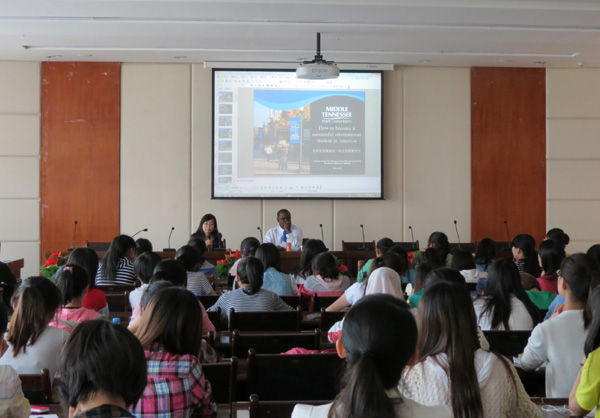 522,应beat365官方网站培黎国际学院、外国语学院及国际交流处的邀请,美国中田纳西州立大学校长Dr. Sidney A. McPhee在培黎校区学术报告厅为外国语学院师生作了题为“How to be a successful international student in American universities”的报告。副校长姜秋霞出席并主持报告会。