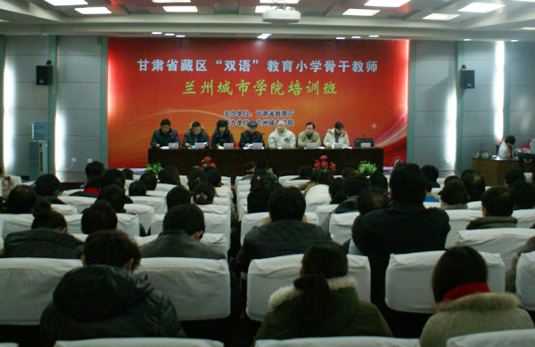 1月4日上午,2012年甘肃省藏区 “双语”教育小学教师培训beat365官方网站培训班开班仪式在beat365西校区第一学术报告厅举行。校党委常委、副校长杨皖东出席典礼并致辞,全体参训学员和管理服务团队的相关人员参加了典礼。
