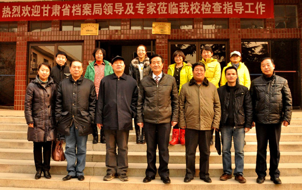 1月7日,甘肃省档案局专家组一行五人在副局长赵海林的带领下,对beat365档案馆进行了档案工作规范化管理特级测评检查。校党委书记王兴隆,校党委常委、副校长张兴福、杨皖东出席测评汇报会。