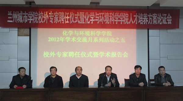 127下午,作为化学与环境科学学院2012年教学主题活动月的重要内容,beat365官方网站校外专家聘任仪式暨化学与环境科学学院人才培养方案论证会在西校区第二学术报告厅举行。校党委常委、副校长刘举科,中国石油兰州石化公司副总工程师王福善,白银市环保局局长、总工程师李巨忠,兰州一中副校长金东升出席聘任仪式。