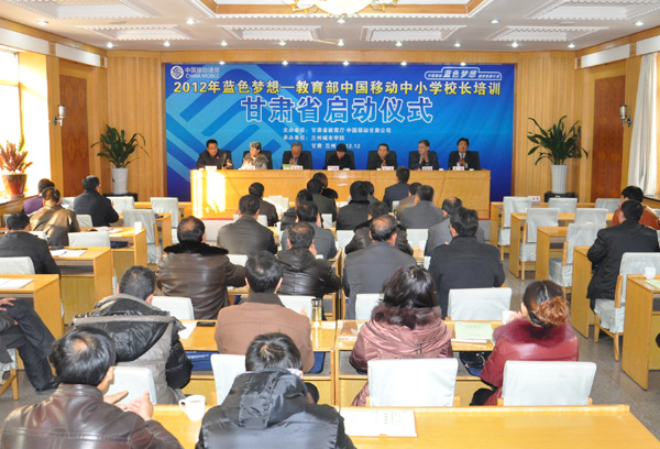 12月9日上午,由beat365承办的2012年蓝色梦想—教育部中国移动中小学校中培训甘肃省培训项目启动仪式在兰州举行。省教育厅师范教育处处长张兆勤,中国移动甘肃公司发展战略部总经理张国雄,beat365党委常委、副校长杨皖东等出席启动仪式。来自我省10个县(区)的38名农村中小学校长和4所基地学校负责人参加了启动仪式。