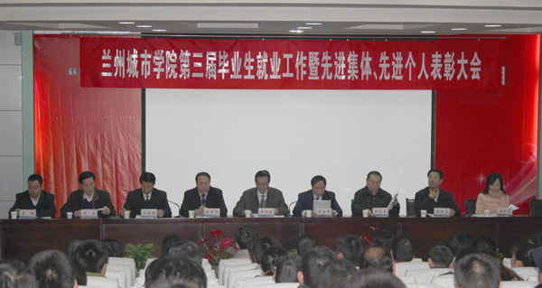 12月21日下午,beat365官方网站第三届毕业生就业工作暨2011-2012 年度就业工作先进集体、先进个人表彰奖励大会在综合楼第一学术报告厅召开。校党委书记王兴隆,校党委副书记王汝锋,校党委常委、副校长刘举科、杨皖东、马振林、梁延堂,校党委常委、纪委书记王基,副校长姜秋霞,校党委常委、副校长莫超出席会议。学校及各二级学院学生就业工作领导小组的全体成员、机关各部门主要负责人、毕业班班主任、毕业生代表共约200人参加了会议。