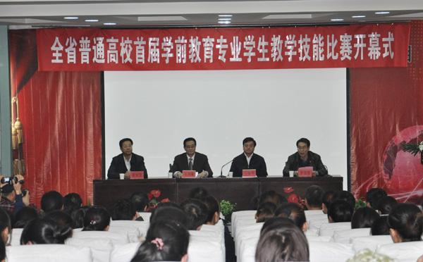王智平在开幕会上讲话指出,为适应学前教育教师质量提升的需要,结合《国家中长期教育改革和发展规划纲要(2010—2020年)》以及我省相关政策文件的贯彻落实,促进我省普通高校学前教育专业的建设和发展,提高学前教育专业学生的教学技能,培养更加适应学前教育事业发展需要的高素质幼儿教师,省教育厅决定,从2012年起,定期举办甘肃省普通高校学前教育专业学生教学技能比赛活动。
