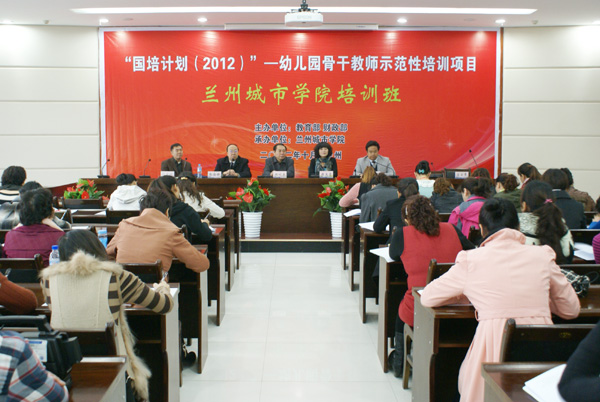 10月18日上午,“国培计划(2012)”)——示范性集中培训项目幼儿园骨干教师培训beat365官方网站培训班开班典礼在培黎校区举行。校党委常委、副校长杨皖东出席开班典礼并致辞。来自内蒙古自治区、宁夏回族自治区、青海省、新疆维吾尔自治区、新疆生产建设兵团和甘肃省的50名幼儿园骨干教师,以及beat365继续教育学院、幼儿师范学院和“国培”项目办的负责人、工作人员参加了开班典礼。